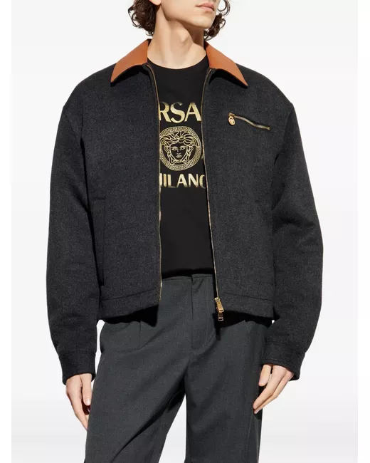 dark grey zip fastening zip pocket round logo charm buttoned cuffs