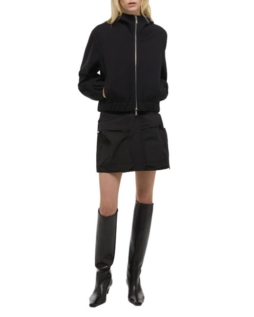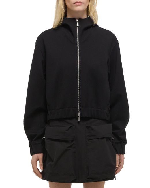 This shell jacket from Helmut Lang features exposed seams and a hooded design for added coverage. Hood Drop shoulders Long sleeves, elasticized cuffs Side welt pockets Elasticized hem Front zip closure 67% viscose/29% nylon/4% elastane Dry clean Imported SIZE & FIT About 23" from shoulder to hem Model measurements: 5'10" tall Model is wearing a US size Small. Contemporary Sportswear - Helmut Lang > Helmut Lang > Saks Fifth Avenue. Helmut Lang. Color: Black. Size: XS.