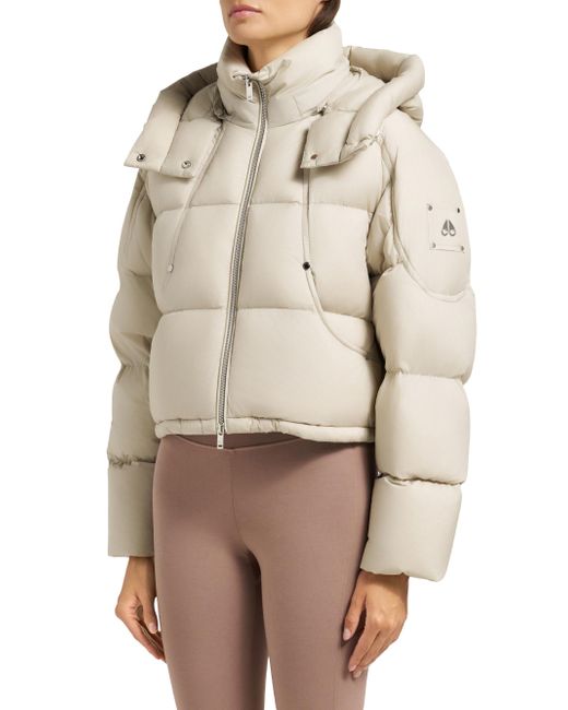 Moose Knuckles' Akai crop puffer jacket features a removable shearling collar and two-way zip closure. This style is designed with two zip pockets, iconic logo hardware, and is insulated with down for warmth. Removable shearling collar Long sleeves, elastized cuffs Front zip pockets Front zip closure 100% nylon Fill: 90% duck down/10% feathers Trim: 100% shearling Fur type: dyed sheep Fur origin: Spain Machine wash Imported SIZE & FIT About 33.5" from shoulder to hem Model measurements: 5'9" tall Model is wearing a size Small ABOUT THE BRAND Moose Knuckles' luxe parkas are designed to withstand extreme temps. Founded in 2007, the Canadian outerwear brand melds function with fashion. The handcrafted, fur-trimmed jackets are designed to protect from wind and water, with down insulation for maximum warmth. Plus, the brand boasts cozy hats and gloves to finish your cold-weather look. Outerwear And Swimwear - Down > Moose Knuckles > Saks Fifth Avenue. Moose Knuckles. Color: Alabaster. Size: XS.