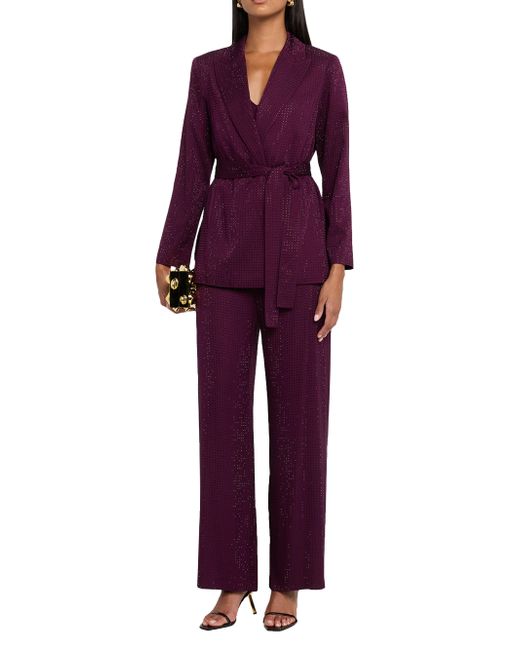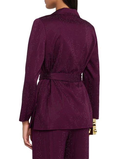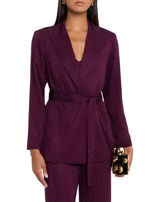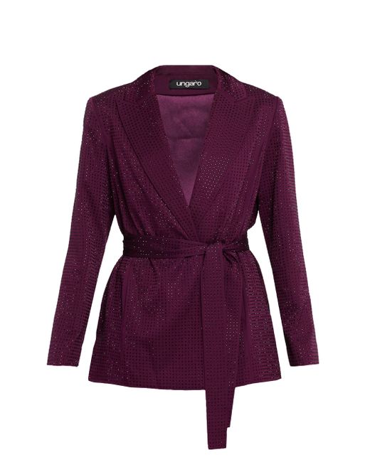 Crafted of stretch silk and embellished with hotfix crystals, Ungaro's Willow double-breasted jacket is styled with notched lapels and a self-tie belt. Notched lapels Long sleeves Self-tie belt Pulls on 91% silk/9% spandex Lining: 95% polyester/5% elastane Dry clean Imported SIZE & FIT About 29" from shoulder to hem Model measurements: 5'10" tall Model is wearing a US size Small. Modern Collections - Branded Separates > Ungaro > Saks Fifth Avenue. Ungaro. Color: Merlot. Size: XS.