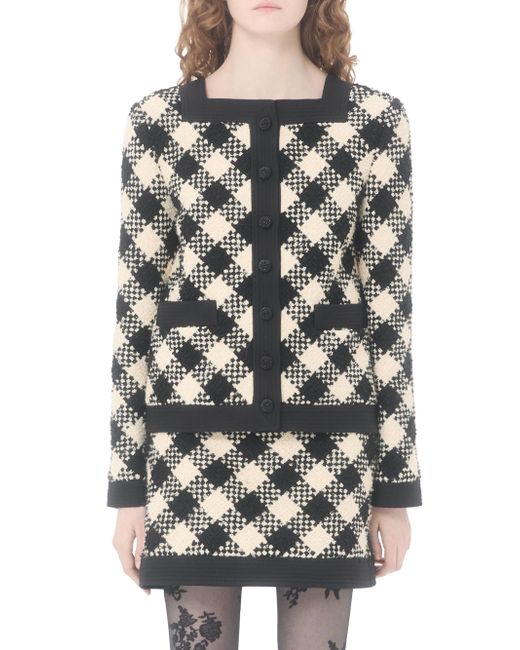 Damier Tweed jacket with contrasting Crepe Couture trim. Front closure with beaded boule buttons Pocket detail Damier tweed (44% cotton, 18% wool, 16% viscose, 12% acrylic, 8% polyamide, 2% mohair wool) Habotai lining (100% silk) Length: 56 cm / 22'' from the shoulders in an italian size 40 The model is 176 cm / 5'9'' tall and wears an italian size 40 Made in Italy. Lsd Rtw - Valentino Rtw > Valentino Garavani > Saks Fifth Avenue. Valentino Garavani. Color: Butter Black. Size: 4.