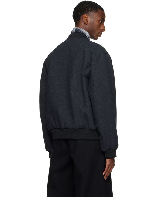 Reversible melton bomber jacket. Reverse in multicolor floral-patterned satin. · Rib-knit stand collar, hem, and cuffs · Two-way zip closure · Welt pockets at waist · Zip pockets at interior chest and waist Supplier color: Dark Grey