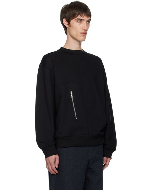 French terry sweatshirt. · Rib-knit crewneck, hem, and cuffs · Zip pocket at front and sleeve · Dropped shoulders · Integrated cinch strap at interior Supplier color: Black