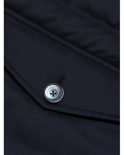 Crafted of wool blend, this Herno bomber jacket showcases ribbed detailing at the collar and sleeves. Stand collar Long sleeves Waist flap button pocket Button-front closure 100% wool Combo: 57% polyester/43% virgin wool Lining: 100% polyester Fill: 90% down/10% feather Dry clean Imported SIZE & FIT Regular fit Model measurements: 6'2" tall, 40" chest Model is wearing a US size 40. Mens Modern Coll & Outer - Contemporary Outerwear > Herno > Saks Fifth Avenue. Herno. Color: Dark Blue. Size: 36.