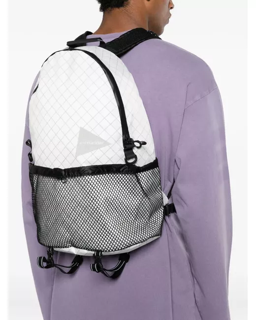 off white grid pattern mesh detailing top handle adjustable shoulder straps zip fastening logo detail