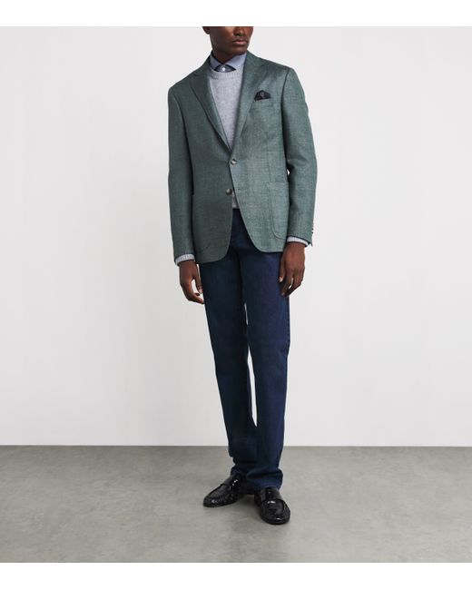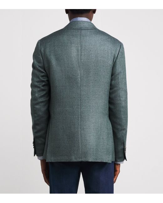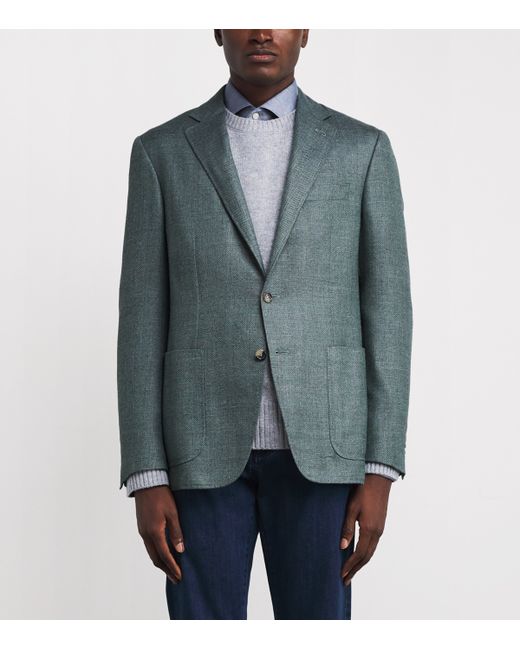 Italian tailoring is famous the world over thanks to its characteristic blend of comfort and sophistication, having distinguished itself from English tailoring to be more suitable to the heat of the Mediterranean climate. Canali continues that tradition with this blazer, crafting it from a blend of wool, silk and linen for a sumptuous hand feel.