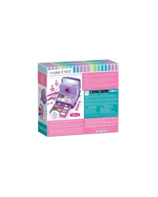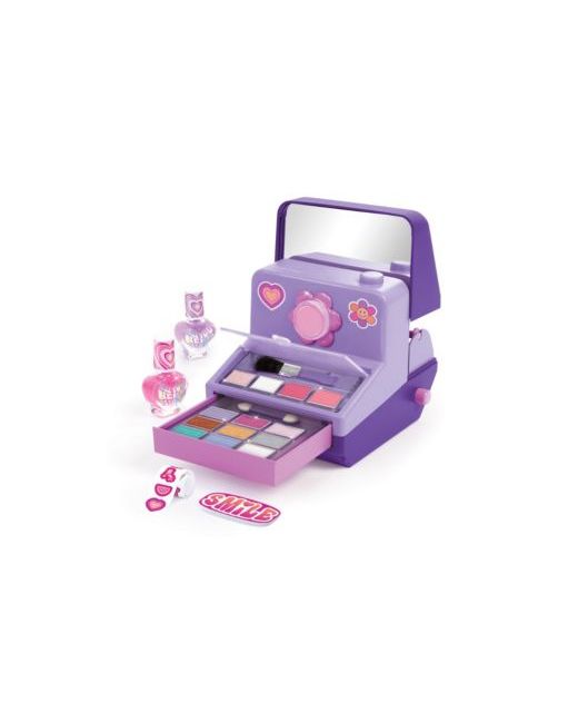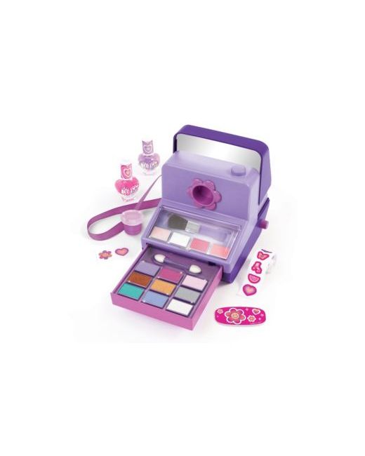Let's see what makeup looks develop when you use the Instant Glam Cosmetic Case. This camera-shaped case comes complete with a variety of makeup for head-to-toe glam, a pop-up mirror, nail file, and uber cute stickers to decorate the case.
