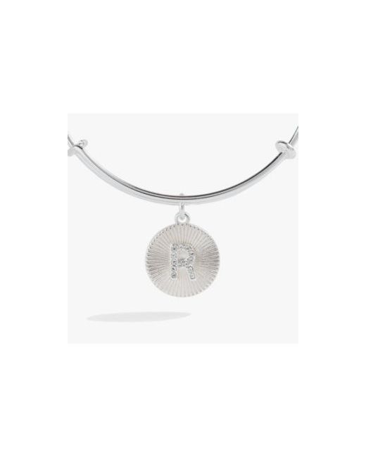 Women's Silver Pave Starburst Texture Initial Bangle Bracelet M Alphabet R