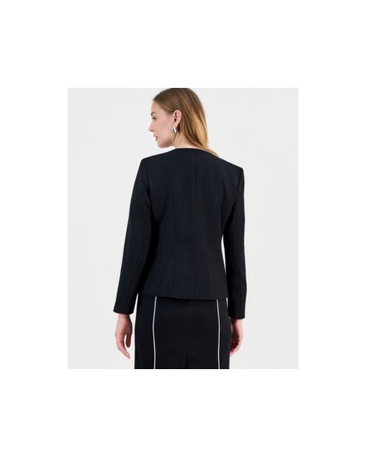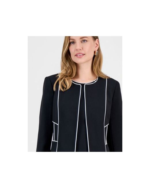 Kasper's crewneck jacket features a structured silhouette with an open front, enhanced by contrasting piping for a polished and refined touch to the classic design.