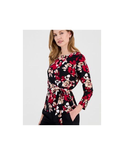 Women's Multicolor Printed 3/4-Sleeve Side-Tie Top