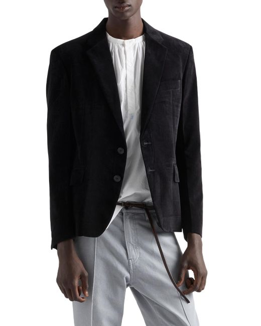 Classic fit Tailored workmanship Classic lapel Center vent Two-button closure Cuffs with two buttons Flapped welt pockets Lined Fabric triangle on the back The creases are created by pressing the finished garment Imported 100% Cotton - 100% Trochus Niloticus. Lsd Rtw - Prada Rtw > Prada > Saks Fifth Avenue. Prada. Color: Black. Size: 40.