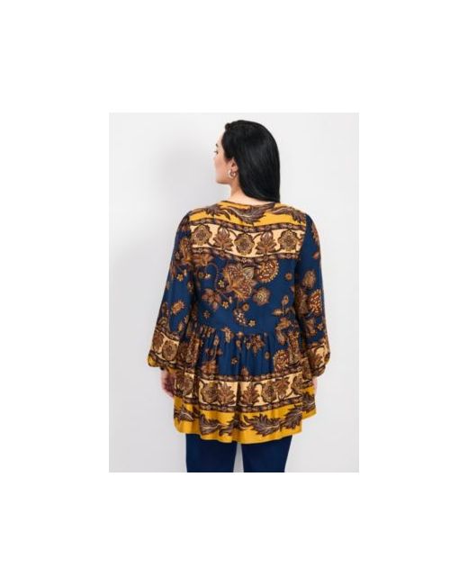 Discover the Cara Blouse—a playful twist on a classic peasant style. This top is all about effortless chic, featuring a stunning placement print that dances around the neckline and hemline, adding a touch of whimsy to your wardrobe. Crafted with care, it boasts a round neckline with an irresistible keyhole detail at the center front, creating a focal point that's both subtle and captivating. Fabric: 100% Viscose Care: Machine Wash Imported Key Features Include: Length: 29". Plus Sizes 14-32Avenue. Pull on, relaxed fit peasant Top. Placement print. Long sleeve