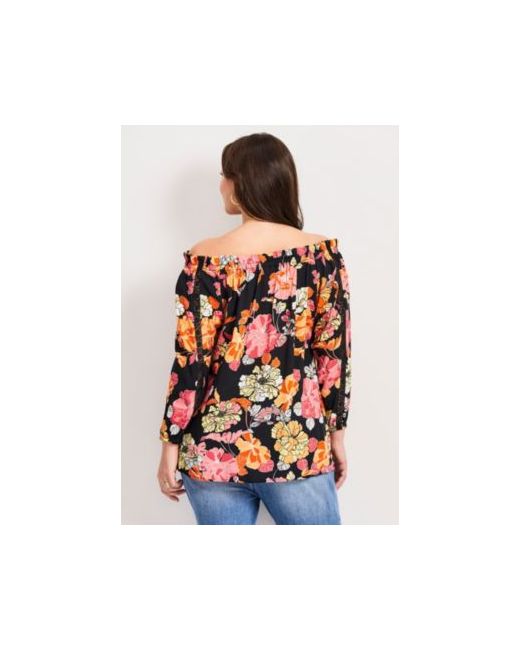 This top features an off-the-shoulder neckline with a gently elasticized edge for a comfortable and stylish fit. The long sleeves have a relaxed shape with subtle gathering at the cuffs, adding a touch of softness to the silhouette. Fabric: Soft, smooth fabric is lightweight, comfortable and cool to the touch. Fit: Relaxed fit. Off the shoulder convertible neckline. Long sleeves. Care: Machine Wash Key Features Include: 100% Rayon. Imported. Length: 32". Plus Sizes 14-36Avenue