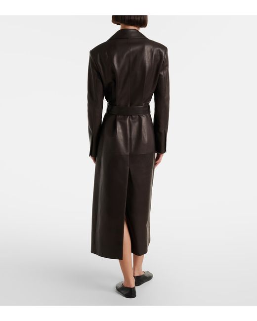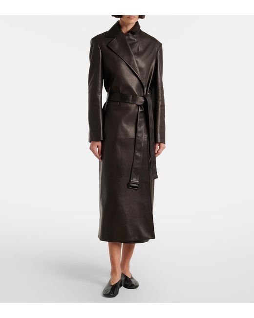 Material: 100% calf leather. Care instructions: specialist clean. Made in Italy. Designer color name: Coffee. Item color: brown. Lining: 100% silk. Pockets: side slit pockets. Detachable belt. Leather.