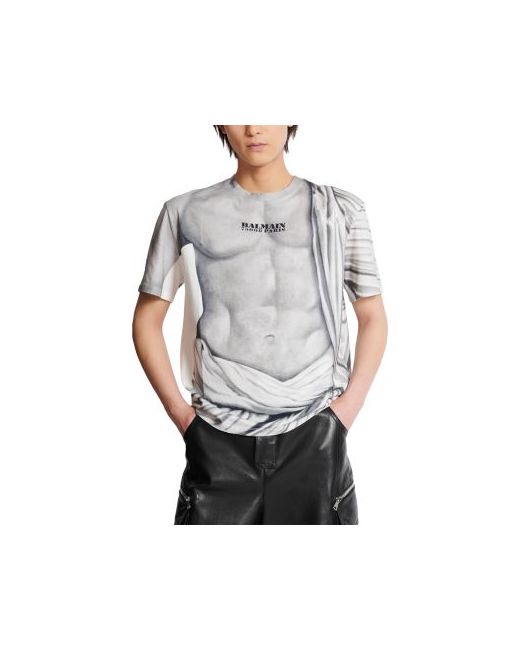Balmain Statue Printed Tee.Color:Multi Grey.Size:XXL.Material:100% cotton.Tees.