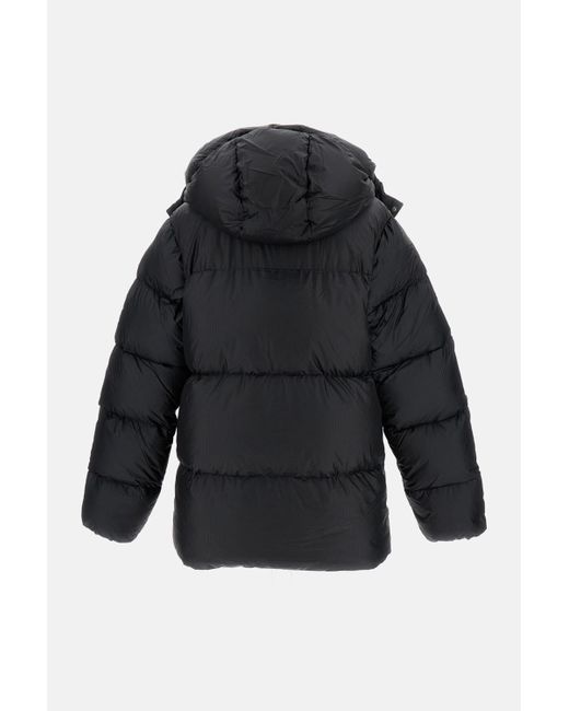 Padded jacket in feather and downBlack colorNylon exteriorZip closureTwo side zip pocketsHood with drawstringElastic cuffsStraight hem with adjustable internal drawstringInternal zip pocketLogo applied on the sleeveColor: black