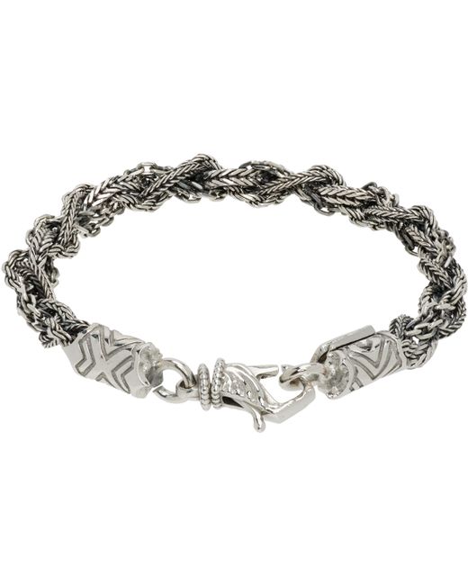 Braided foxtail chain bracelet in sterling silver. Logo and graphic engraved at lobster-clasp fastening. Supplier color: Silver