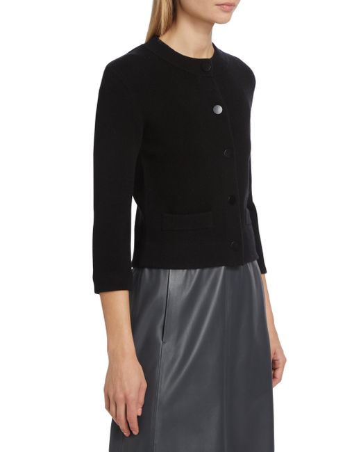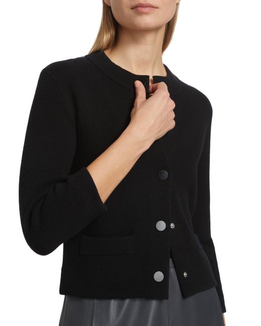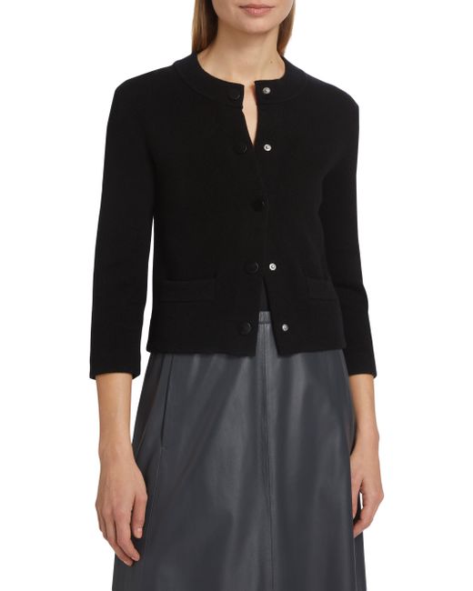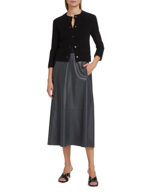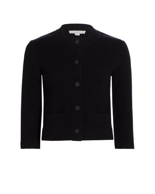 The Shrunken Snap Cardigan by Vince is a modern take on the classic cardigan, featuring a crewneck and three-quarter-length sleeves for a refined silhouette. It's designed with side patch pockets, rib-knit trim for added texture, and a front snap closure. Crewneck Three-Quarter-Length sleeves Side patch pockets Rib-knit trim Front snap closure 35% wool/ 32% cotton/ 17% nylon/ 15% cashmere/ 1% spandex Trim: 46% wool/ 30% cotton/ 19% cashmere/ 4% nylon/ 1% spandex Pocket lining: 70% wool/ 30% cashmere Dry clean Imported SIZE & FIT About 20.25" from shoulder to hem Model measurements: 5'10" tall Model is wearing a US size Small. Contemporary Sportswear - Vince > Vince > Saks Fifth Avenue. Vince. Color: Black. Size: Large.