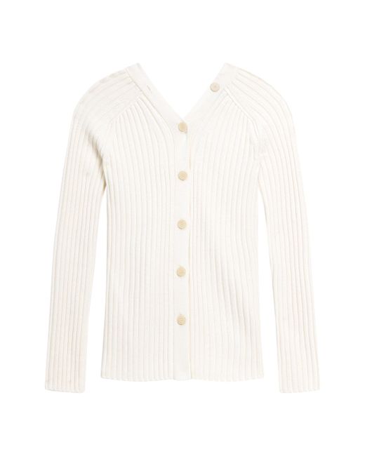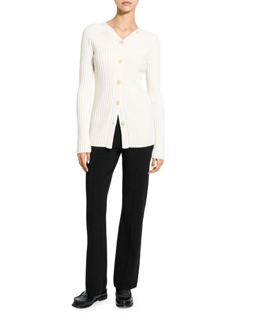 Crafted of merino wool, this long, fitted ribbed cardigan from Theory features a button-up at the front and back. V-Neck Long sleeves Button-front closure 100% merino wool Dry clean Imported SIZE & FIT About 28" from shoulder to hem Model measurements: 5'10" tall Model is wearing a US size Small. Contemporary Sportswear - Theory Sportswear > Theory > Saks Fifth Avenue. Theory. Color: White. Size: XS.