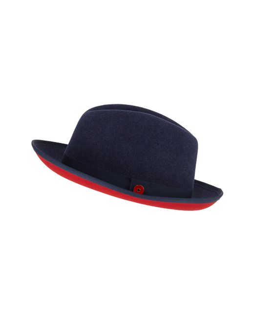 This King fedora hat from Keith James is crafted of soft wool and features a pinched crown, flat brim, and grosgrain band. Wool Trim: polyester Spot clean Made in USA. Men Accessories - Classic Accessories > Keith & James > Saks Fifth Avenue. Keith & James. Color: Blue. Size: Medium.