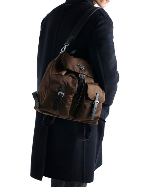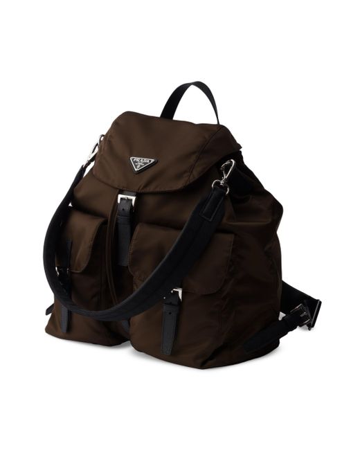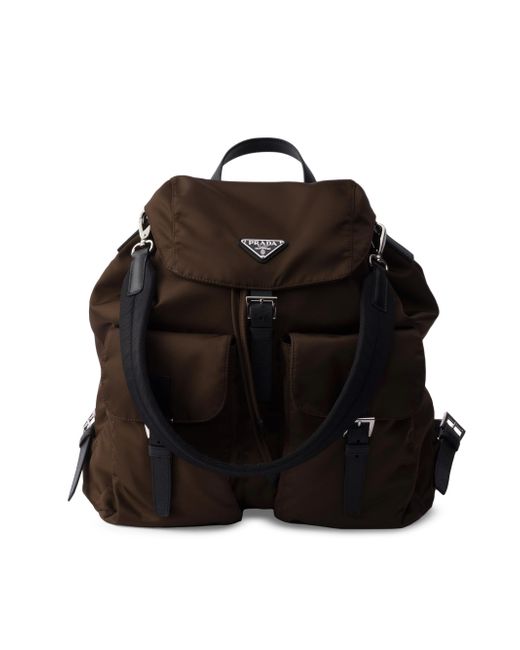 With removable padded woven nylon tape handle Flat leather handle Adjustable woven nylon tape harness straps Enameled metal triangle logo on the front Closure with flap, strap, buckle and magnet two external pockets Interior with zipper pocket and patch pocket Logo-print Re-Nylon lining Imported 100% Recycled Polyamide - 100% Calf Leather - 100% Solventfree Resin Pu 34 W x 39 H x 15 L / 13.3'' x 15.3'' x 5.9''. Lsd Rtw - Prada Rtw > Prada > Saks Fifth Avenue. Prada. Color: Brown.