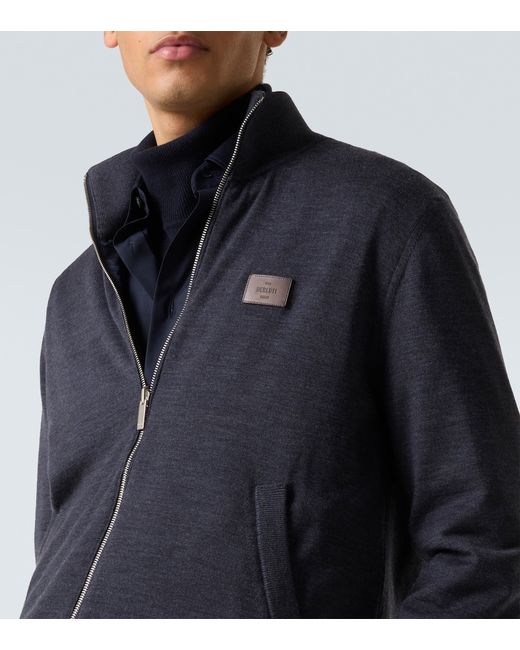 Material: 100% wool. Care instructions: dry clean. Made in Italy. Designer color name: Purple Cloud. Item color: blue. Material II: 100% polyamide. Details: 100% calf leather. Contains non-textile parts of animal origin. Wool. Cuff: ribbed. Pockets: slant pockets, internal pockets. Hem: ribbed. Closure: zipped front. Reversible.