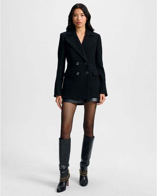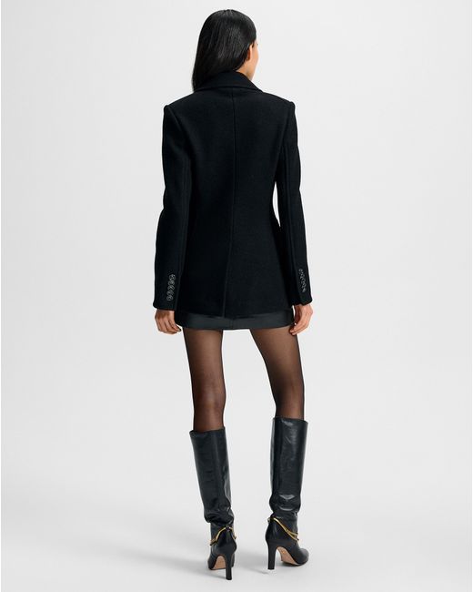 Classic and refined. Crafted from Italian boiled wool, the Duran is thoughtfully designed for a slim, waist-defining fit. An exaggerated peak lapel makes a subtle statement, while flap pockets, functional cuff buttons, and a double-breasted closure add a tailored finish. Layer this black wool coat over your favorite cold-weather looks for instant polish.100% WoolFabric country of origin: ItalyDry clean onlyStyle #2509OW11311321