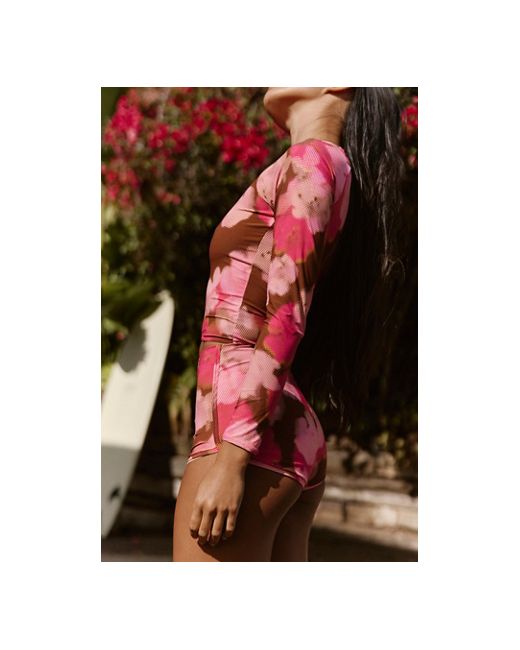 Get the sun protection you need with this long sleeve top, featuring a smooth fabrication made with recycled material and a cropped silhouette with a flattering, wide scoop neck. **Fit:** Fitted; cropped silhouette; scoop neck **Features:** Fabrication features recycled material; long sleeve for added sun protection; scoop neck; cropped silhouette hits just above waist **Why We Rhythm Long-Sleeve Surf Crop at Free People in Digital Flowers, Size: Small