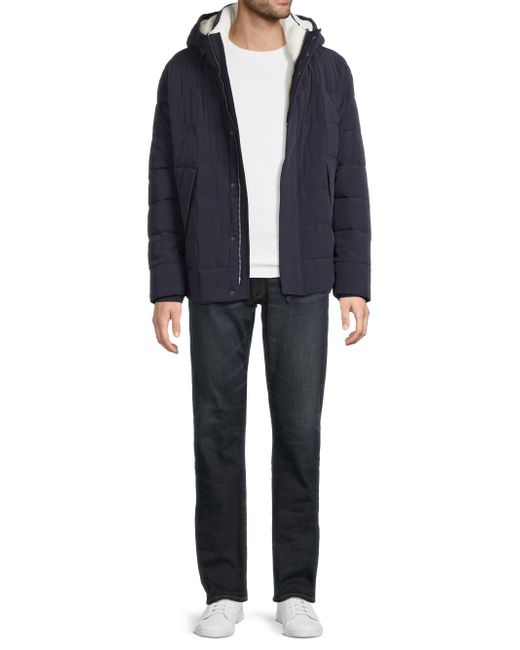 The Klause quilted puffer jacket from Reiss is accented with a sherpa lining and features a drawcord hood. Hood Stand collar Side zip pockets Zip-front closure 98% nylon/2% elastane Dry clean Imported SIZE & FIT About 28" from shoulder to hem Model measurements: 6'2" tall, 40" chest Model is wearing a US size Medium. Mens Modern Coll & Outer - Modern Collections > Reiss > Saks Fifth Avenue. Reiss. Color: Navy. Size: Small.