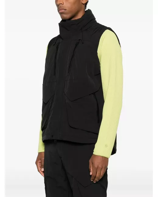 black high neck zip pockets front flap pockets sleeveless drawstring detail