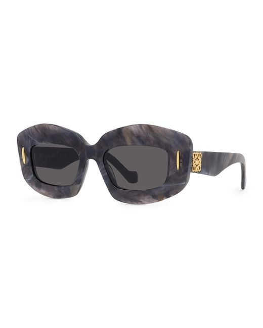 These rectangular sunglasses from LOEWE feature the brand's signature Anagram on the temples along with wide, tapered arms. 100% UV protection Solid lenses Acetate Made in Italy SIZE 49mm lens width 19mm bridge width 140mm temple length. Soft Accessories - Sunglasses > Loewe > Saks Fifth Avenue. LOEWE. Color: Black.
