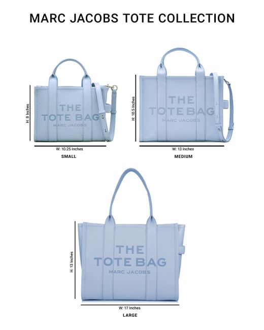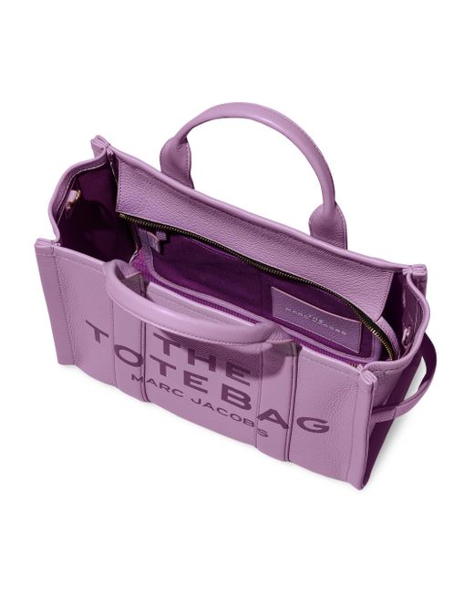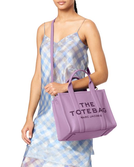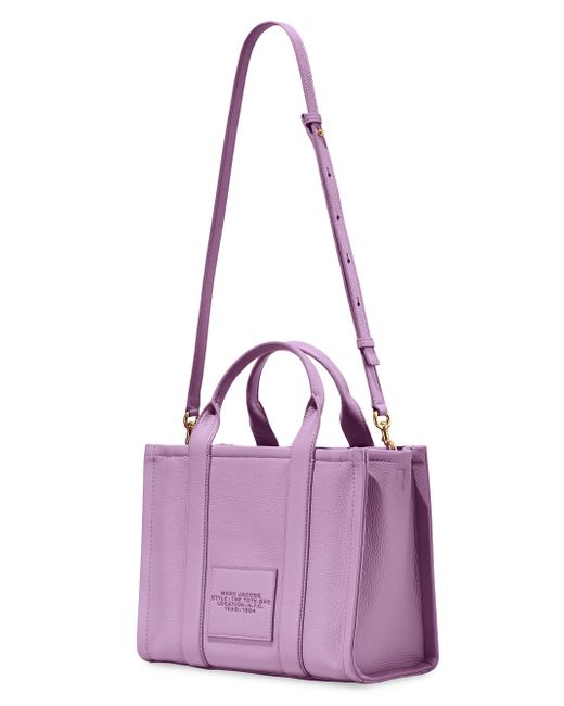 The Leather Medium Tote bag from Marc Jacobs features tonal embossed branding at the front and back. Fixed top handles and a removable adjustable strap with goldtone hardware complete the look. Fixed top handles Removable adjustable strap Zip-top closure Inner open pocket Two interior pockets One card slot Goldtone hardware Dustbag included 100% natural grain leather Imported SIZE Fixed top handles, 4.75" drop Removable strap, 27" drop 13"L x 6"D x 10.5"H. Handbags - Marc Jacobs > Marc Jacobs > Saks Fifth Avenue. Marc Jacobs. Color: Lilas.