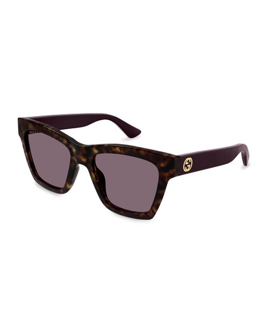 Gucci's cat-eye sunglasses feature gradient lenses, a saddle nose bridge, and an iconic GG logo on the temples. 100% UV protection Gradient lenses Plastic Made in Italy SIZE & FIT 54mm lens width 19mm bridge width 140mm temple length ABOUT THE BRAND First launched in 1921, the Italian luxury fashion house quickly became known for its fine leather craftsmanship and accessories. Today, the visionary brand continues to redefine fashion trends, while celebrating creativity and innovation. Gucci's contemporary designs include shoes, clothing and accessories-often boasting the distinctive Horsebit motif. Soft Accessories - Sunglasses > Gucci > Saks Fifth Avenue. Gucci. Color: Brown Pattern.