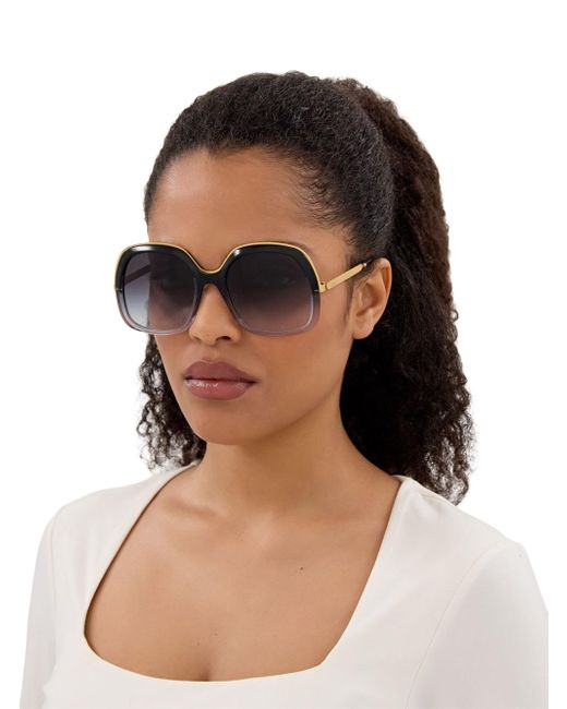 From the Leia Collection. Made in Italy, these rectangular sunglasses from Chloé feature oversized gradient lenses and logo detailing at the temples. Made with recycled acetate 100% UV protection Gradient lenses Includes case and cleaning cloth Recycled acetate/metal Made in Italy SIZE 56mm lens width 19mm bridge width 135mm temple length Please note: Lens replacement is non-optional. ABOUT THE BRAND In 1952, founder Gaby Aghion established Chloé as an alternative to couture, and to appeal to the aspirations and empowerment of women. The label is now led by Creative Director Chemena Kamali, who furthers its signature aesthetic of cool, French-girl style. Soft Accessories - Sunglasses > Chloé > Saks Fifth Avenue. Chloé. Color: Grey.