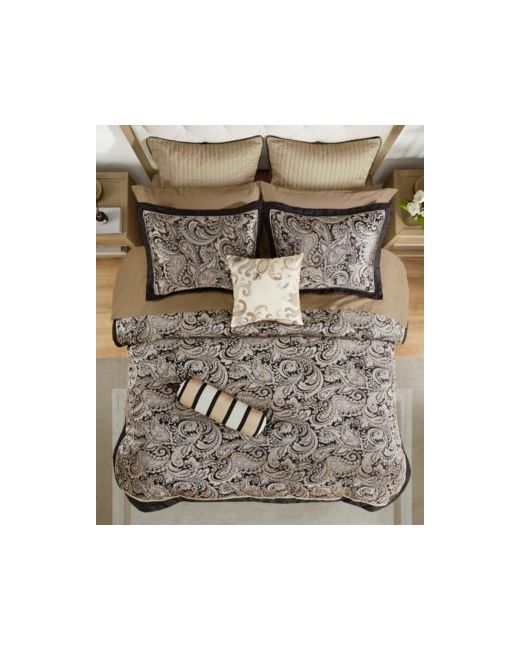 This stunning set features a jacquard weave with a modern paisley pattern. The comforter and shams have a 2 flange and 1/2 flat piping for a refined touch. The comforter reverses to a shade that complements the 100% cotton, 200 thread count sheet set.