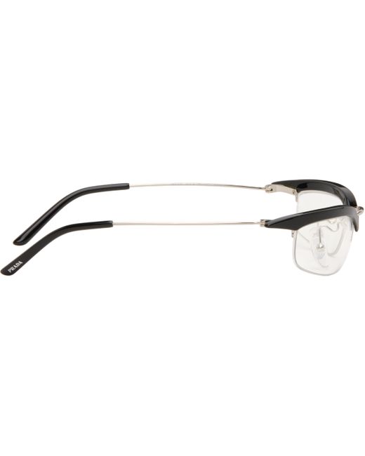 Semi-rimless metal-frame optical glasses. · Acetate trim at top · Rubber nose pads · Acetate temple tips with inset logo · Leather case included · Size: 52.19 125 Supplier color: Silver/Black