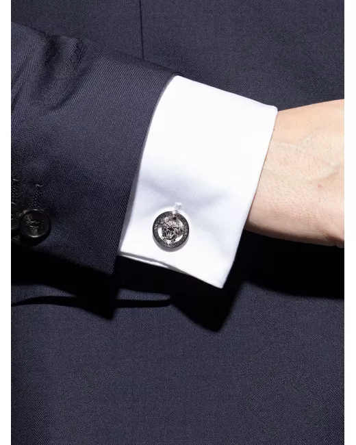 Round Rhodium-Plated Lapis Lazuli Cufflinks