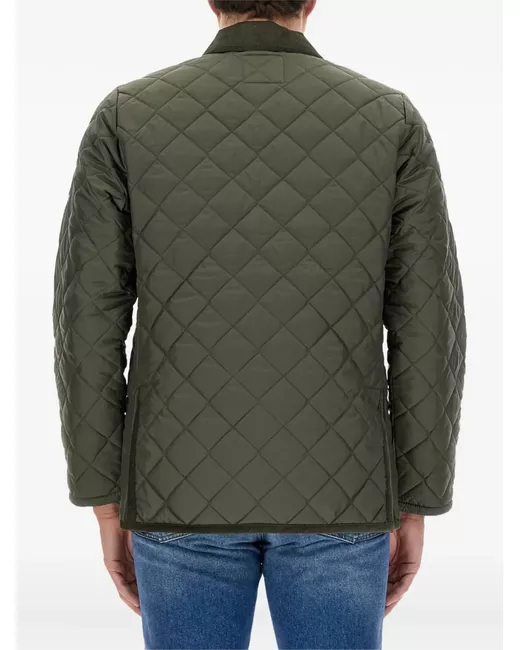 green quilted pattern corduroy collar button fastening patch pockets long sleeves