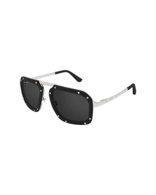 From the Santos Evolution Collection. These sunglasses from Cartier feature a pilot silhouette with studs and platinum-plated metal temples. 100% UV protection Solid lenses Adjustable nose pads Includes case and cleaning cloth Platinum-plated metal/rubber Made in France SIZE 55mm lens width 20mm bridge width 140mm temple length Please note: Lens replacement is non-optional. Soft Accessories - Men Sunglasses > Cartier > Saks Fifth Avenue. Cartier. Color: Black Silver.