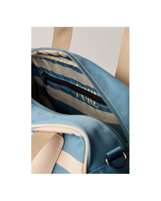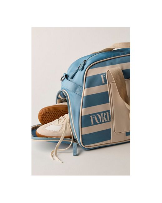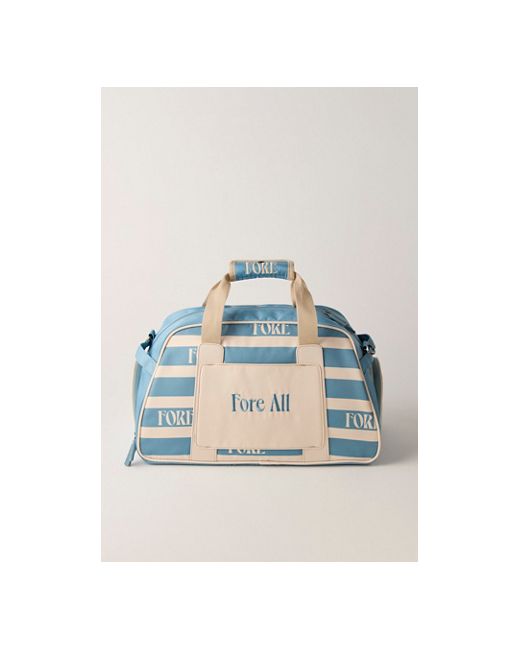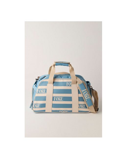 Course-ready carryall from Fore All, crafted in structured cotton twill with a vintage-inspired print. Topped with contrast piping, FORE-branded straps, and premium hardware for a stand-out look. **Features:** * Cotton twill construction * Classic duffel silhouette with zip-top closure * FORE-branded straps and handles * Contrast piping and metal hardware details Fore All Boston Bag Retro Duffle at Free People in Blue Smoke For Stripe