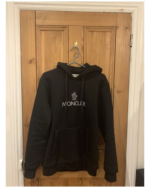 This reflective Moncler Black Hoodie in size L is a stylish and comfortable addition to any man's wardrobe. Made from cotton with a crew neck and long sleeves, it is perfect for the spring season. The hoodie features a hood, logo accents, and a regular fit, making it a versatile piece that can be easily paired with jeans or shorts for a casual look. Easy to care for with machine washable instructions, this pullover hoodie by Moncler is a must-have for any fashion-forward individual. 100% authentic