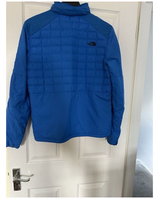 This North Face Thermoball Sky Blue Jacket in size Medium is a stylish and practical choice for winter. Made from polyester with a softshell fabric type, this mid-length puffer jacket features a zip closure and logo accents. The design is suitable for casual occasions, with a regular fit and polyester lining for added comfort. The jacket is machine washable and perfect for outdoor activities such as walking. With its outdoor theme and high-performance features, this The North Face Thermoball jacket is a reliable option for staying warm and stylish in cold weather.