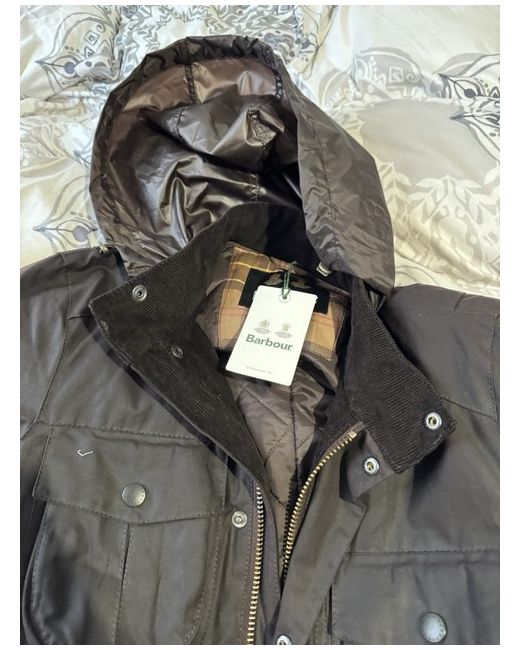 The Barbour Jacket, in a mid-length design with a zip closure and made from durable cotton canvas, is a classic and practical choice for casual occasions. This regular fit jacket, in a stylish green colour, features the iconic Barbour logo as accents and offers both comfort and style for outdoor activities like walking. The jacket is machine washable and lined with polyester for added warmth, making it a versatile and reliable addition to any man's wardrobe.