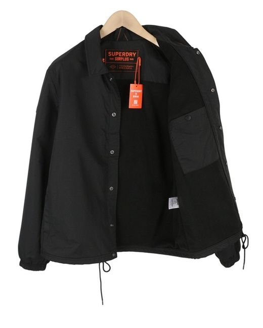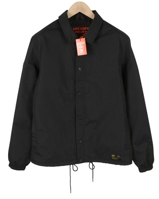 Men's Black Nylon Coach Jacket M Snap Buttons Spread Lightweight