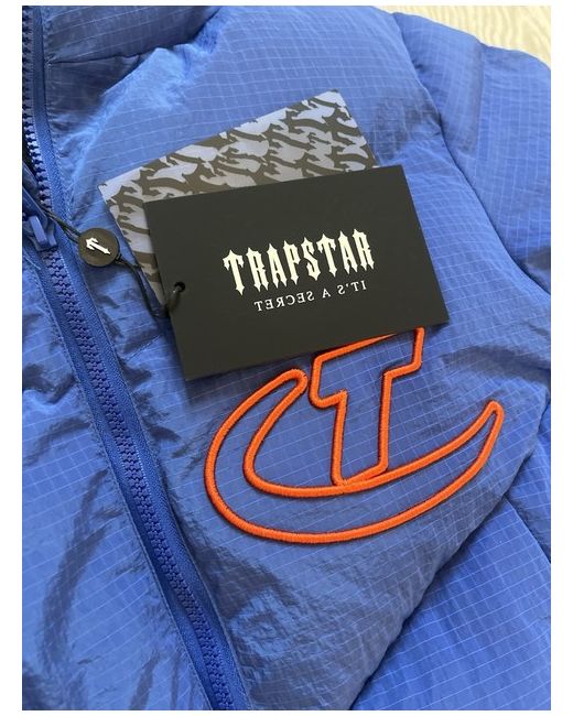 The product is an authentic men's Trapstar Hyperdrive Puffer Jacket in deep blue/red, designed for casual occasions during the winter season. The jacket features a regular fit, with a softshell polyester outer shell and lining. It has a classic puffer style and is suitable for walking activities. The brand Trapstar is known for its quality and unique designs, making this jacket a stylish and practical choice for those looking for a fashionable and functional outerwear option. *NEVER BEEN WORN, NO BAG*