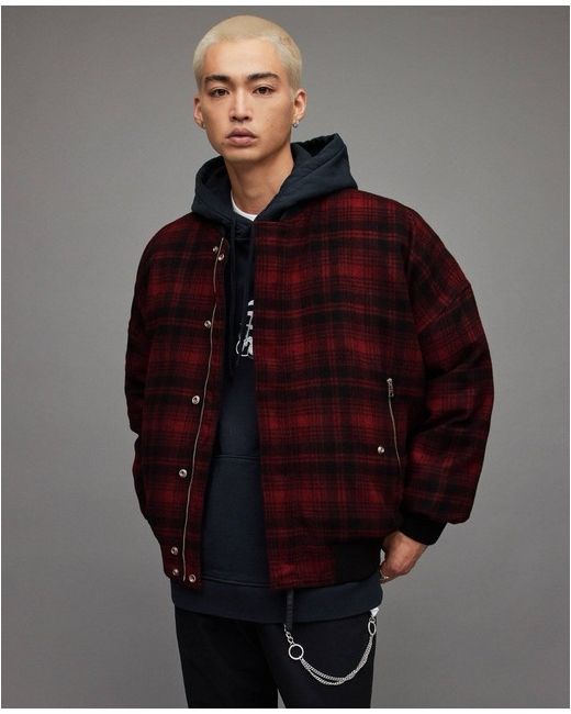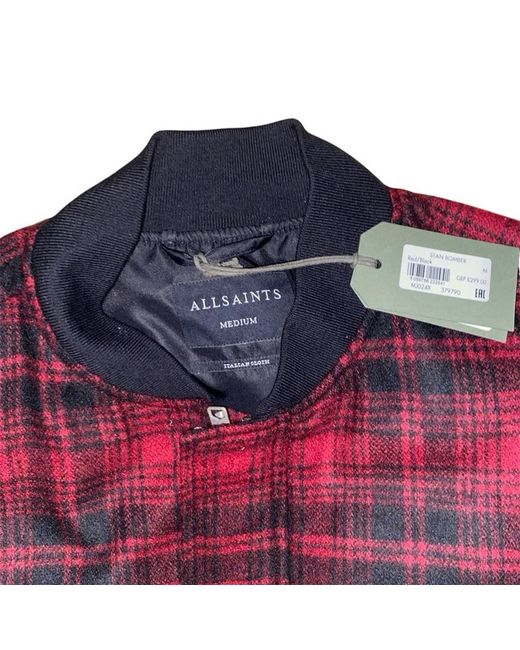 Upgrade your wardrobe with this premium AllSaints Stan Bomber Jacket, featuring a unique reversible design that gives you two distinct styles in one. • Ribbed collar, cuffs & hem for that classic bomber look.