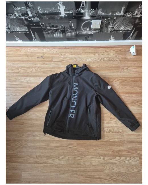 Stay stylish in the cold with this Moncler Men's Windbreaker Jacket. Made with durable nylon outer shell material and filled with warm down insulation, this jacket is perfect for winter walking. The black colour, designer logo accents, and zip closure add a touch of sophistication to the casual style, making it a must-have for the season. Easy to care for with machine washable nylon 1:1 lining, this regular fit jacket is a timeless addition to any man's wardrobe.