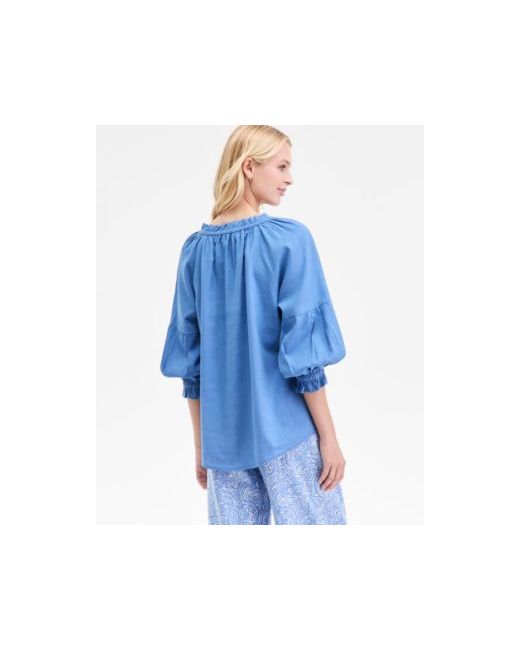 A boho-inspired beauty from Nautica Jeans, this long-sleeve blouse features subtly ruffled edges at the neckline and cuffs.