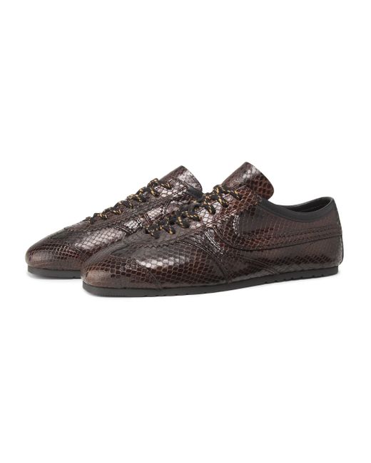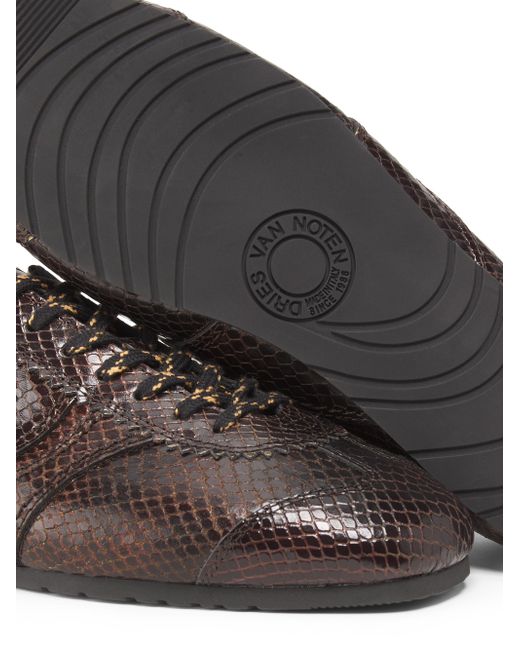 Made in Italy, these sneakers from Dries Van Noten are crafted of snake-embossed leather. Round toe Lace-up style Leather upper Leather sole Made in Italy ABOUT THE BRAND Designer Dries Van Noten was part of the Antwerp Six, an influential group of fashion designers who graduated from the Royal Academy of Fine Arts in Antwerp in the 1980s. Van Noten is known for his intellectual aesthetic, using artful textiles and lush prints to craft his ready-to-wear, shoes and accessories. Women's Shoes - Advanced Women's Designe > Dries Van Noten > Saks Fifth Avenue. Dries Van Noten. Color: Dark Brown. Size: 7.