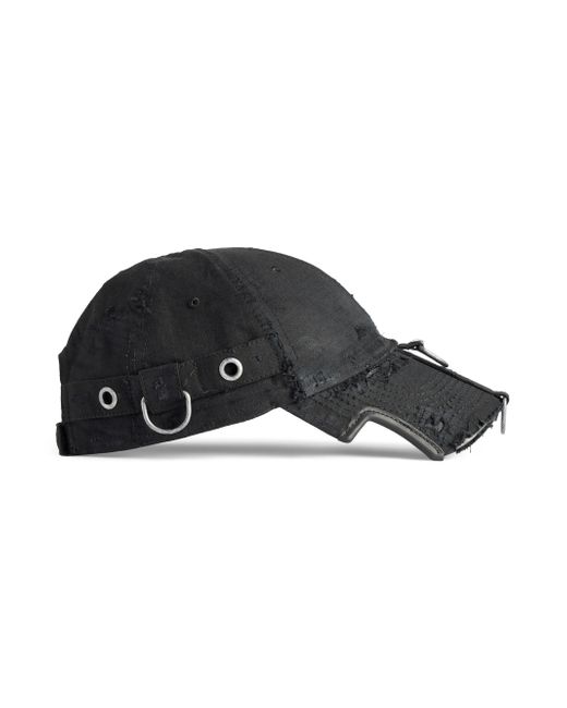 Technical ripstop Worn-out, destroyed details Classic baseball cap shape Ventilation eyelets embroidered on top Adjustable hook and loop tab at back with Balenciaga embroidery Visor cut out on both sides Cargo pants inspired Silver-toned D-ring details Made in Italy Main Material: 100% Polyester Lining: 100% Cotton Embroidery: 100% Polyester Accessories: Metal. Lsd Rtw - Balenciaga Rtw > Balenciaga > Saks Fifth Avenue. Balenciaga. Color: Black. Size: Large.
